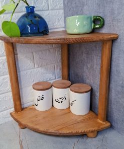 استند چوبی دو طبقه مناسب قراردادن در کنج اشپزخانه و استفاده بهینه از فضا میباشد.